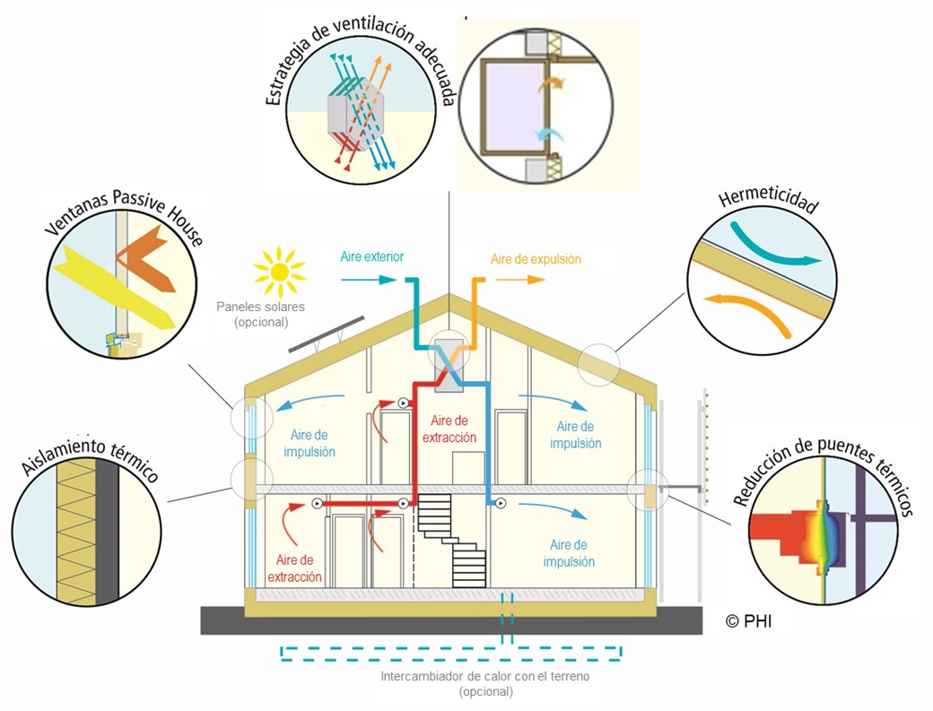 Una Casa Pasiva es un edificio diseñado para una muy baja demanda energética y un alto confort. La clave para que un proyecto sea realizado bajo el estándar Passivhaus es la aplicación de los principios básicos: una envolvente debidamente aislada, de muy alta hermeticidad e idealmente, sin puentes térmicos, ventanas de alta calidad y una estrategia de ventilación adecuada. Asi, La demanda para calefacción y refrigeración es tan baja que los sistemas convencionales para calentar o enfriar la casa no son necesarios. Además, la alta eficiencia energética permite que la inversión adicional en las medidas implementadas sea compensada con los ahorros durante la operación del edificio.