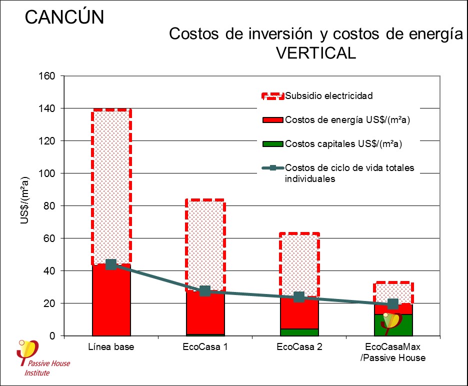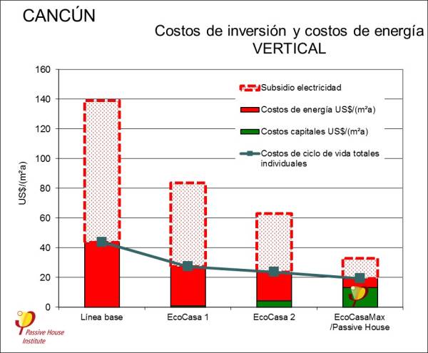 En México, dados los subsidios a los precios de la energía, el retorno a la inversión podría tardar un poco más que en los casos en los que no hay un subsidio. Pero aun así, Casa Pasiva es la opción más rentable, como lo demuestran los estudios que hemos hecho para el caso de México. Cuando se analizan los costos en el ciclo de vida completo de la vivienda, se puede ver claramente que la inversión adicional se compensa siempre con los ahorros. Esto es todavía más evidente si se toma en cuenta el subsidio a la energía.